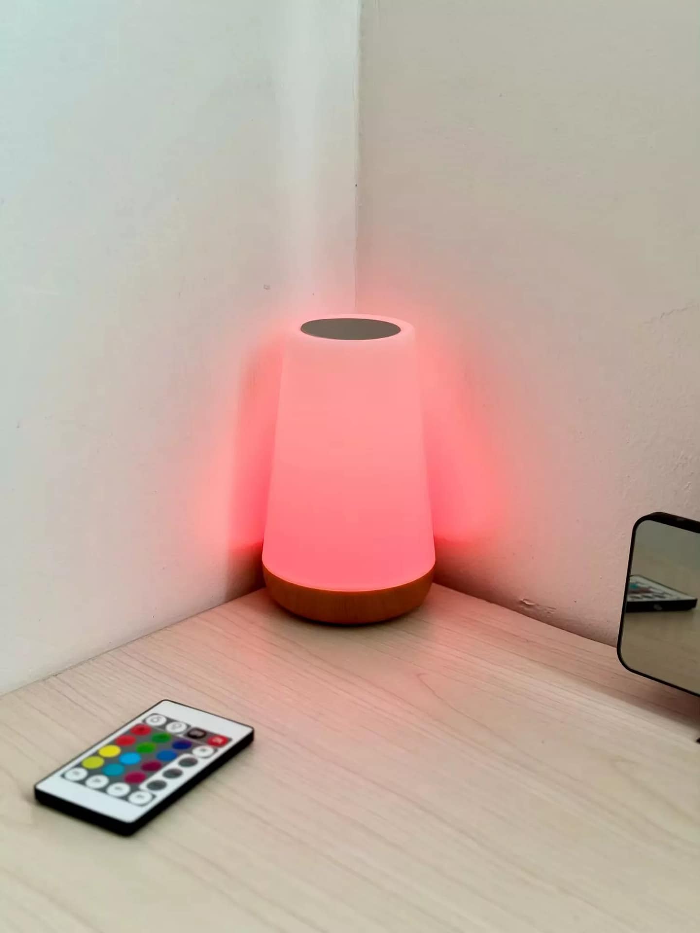 Transform your room with the 13-Color Changing Night Light, a versatile and stylish addition to any bedside table. This portable lamp features a touch control and remote control, making it incredibly easy to adjust the lighting to suit your mood or activity. With its sleek design and practical features, this lamp is perfect for creating a cozy atmosphere, providing a soft night light for children, or adding a splash of color to your living space.