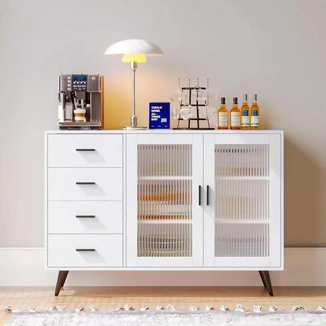 More than just a storage unit, this cabinet is a statement piece that adapts to your lifestyle. Whether used as a stylish sideboard in your kitchen, an elegant buffet cabinet in the dining room, or a chic console table in the entryway, it’s sure to impress. It also doubles as a cozy coffee bar cabinet, offering a charming spot for your coffee rituals.